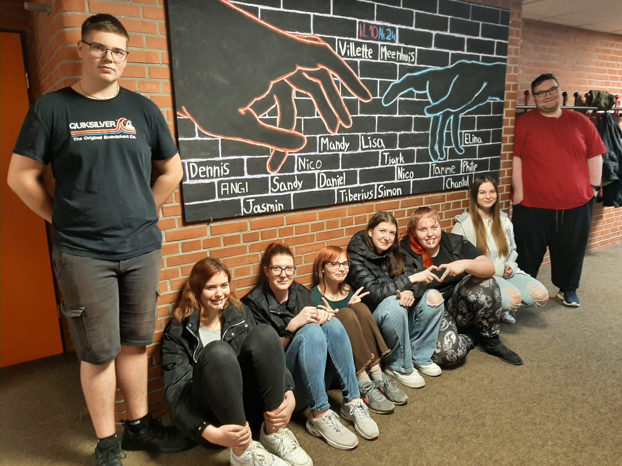 Mit Freude und Stolz präsentieren Tamme, Jasmin, Sandy, Chantal, Mandy, Lisa, Angelina und Simon das Ergebnis des Projektes