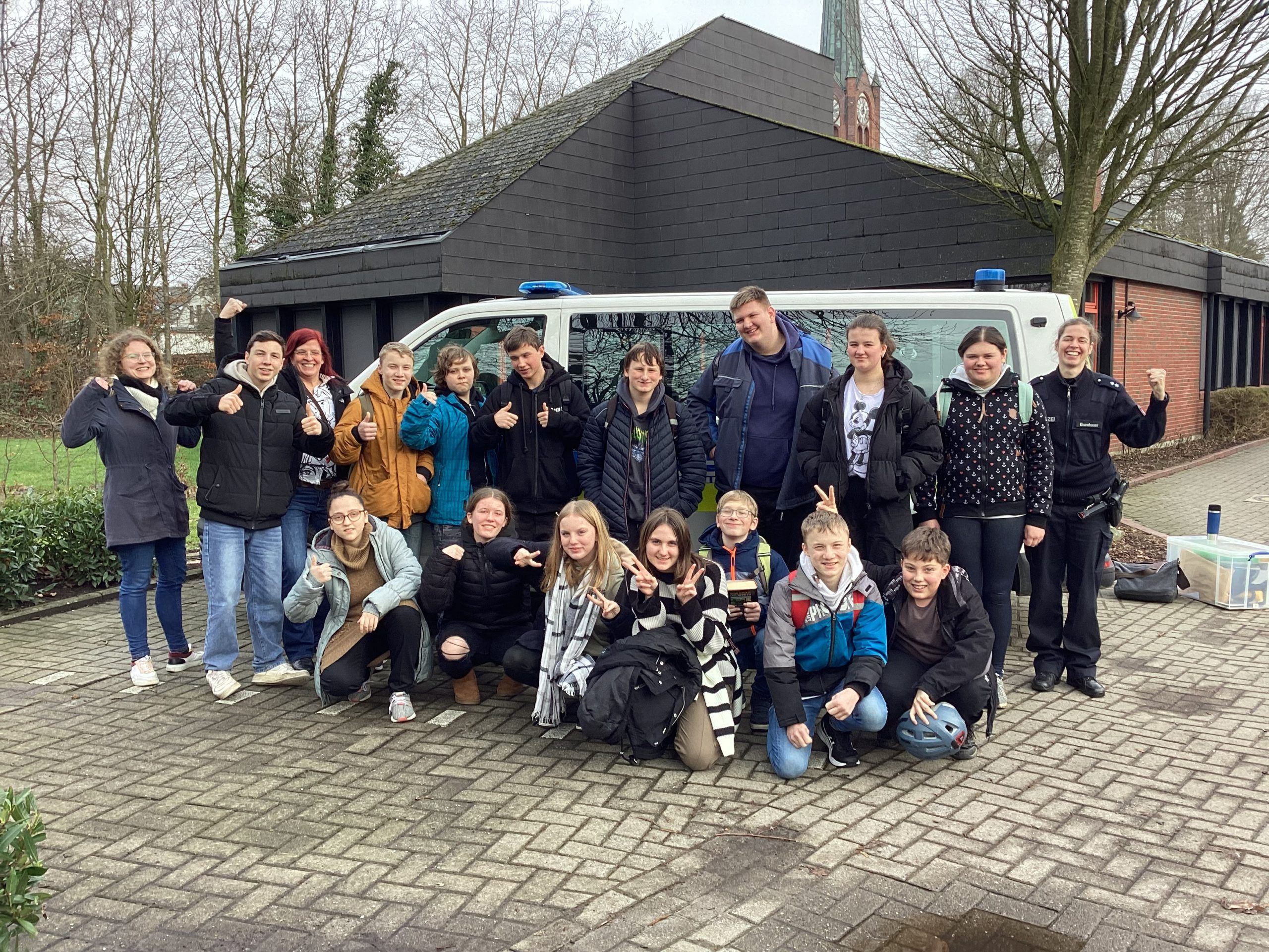 Am 12. und 13.02.2024 nahmen die Klassen 8a und 8b mit Freude am Training „Wir sind stark“ teil, das Frau Villette (PSB) und Frau Eisenhauer (Polizei) engagiert und überzeugend anleiteten. Bei dem Programm geht es um die Förderung von Selbstbehauptung, gewaltfreier Konfliktlösung und Zivilcourage: Die Schüler und Schülerinnen ließen sich mit Vergnügen auf die vielfältigen Übungen ein, die in angenehmer Atmosphäre im Paul-Gerhardt-Haus Brake durchgeführt werden konnten!