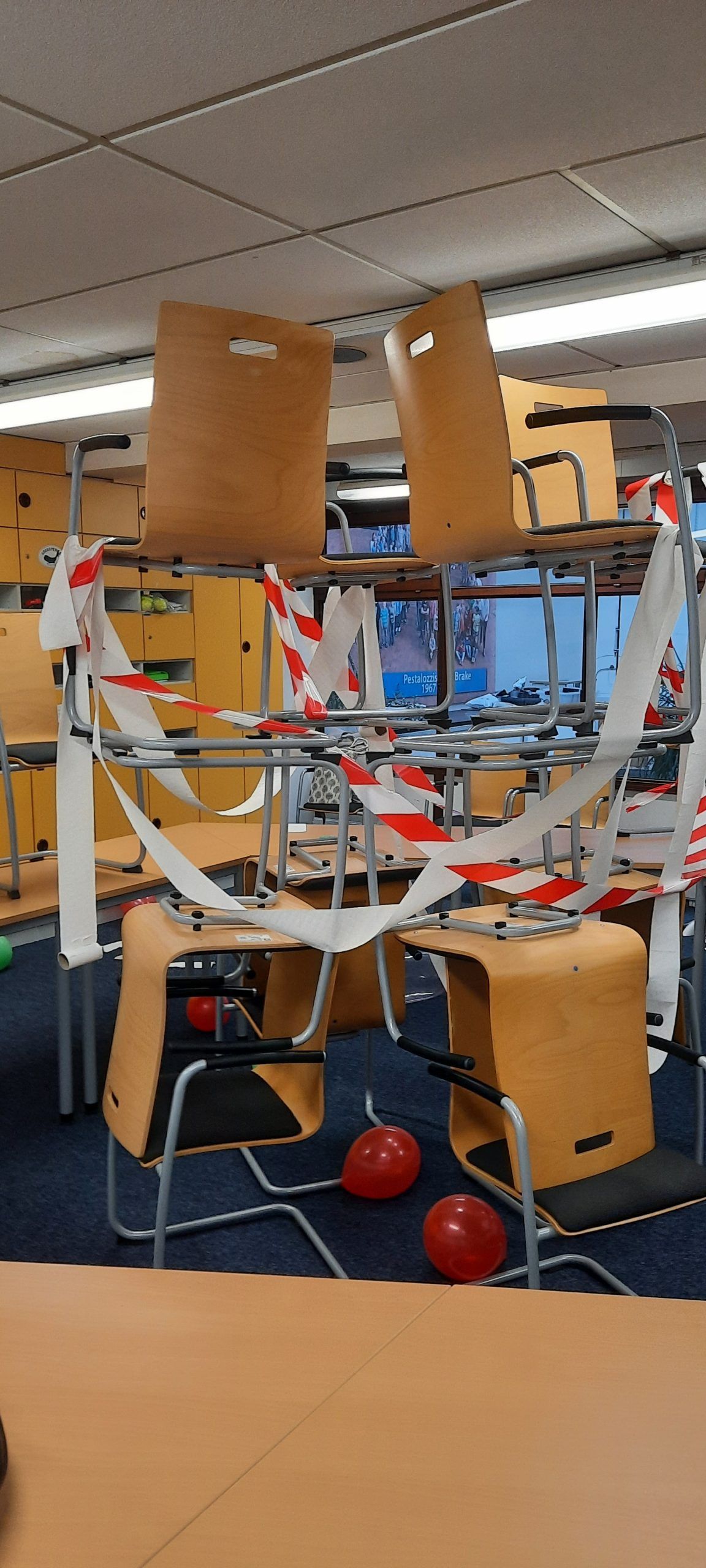 In einer „verwüsteten“ Schule mussten sich das Schulpersonal und alle Schülerinnen und Schüler durch einige Wegsperren und Fallen kämpfen.