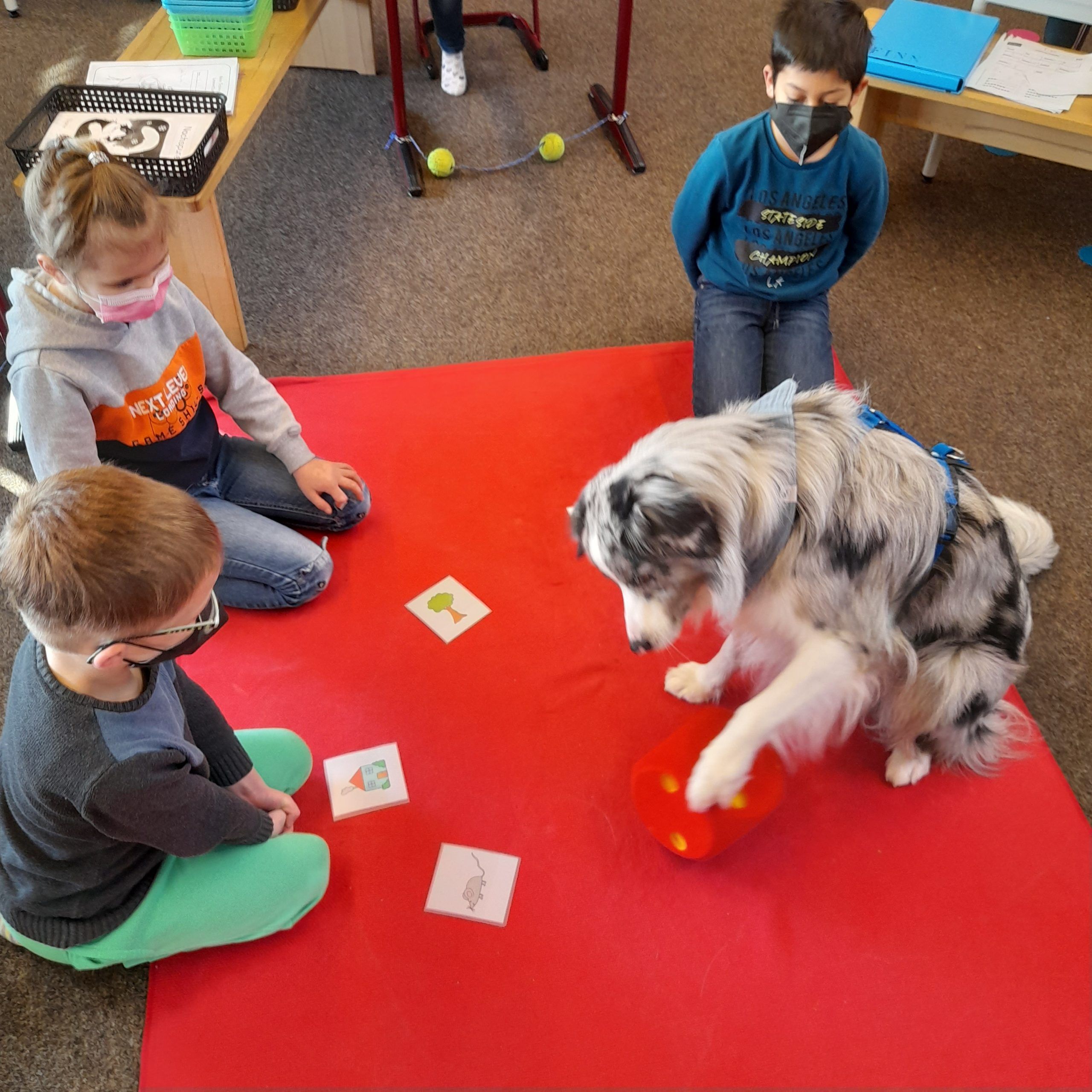 Tagen, an denen der Hund anwesend ist, herrscht ein hohes Maß an Konzentration und Arbeitsmotivation. Die Kinder haben sehr schnell gelernt, wie sie mit einem Hund